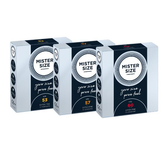 MISTER SIZE ist in sieben verschiedenen Größen erhältlich, um jedem Mann das bestmögliche Erlebnis zu ermöglichen. Denn jedes beste Stück ist einzigartig und verdient eine perfekte Passform.
